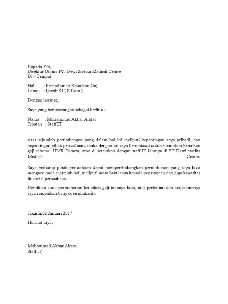 Contoh Surat Permohonan Kenaikan Gaji Bagi Karyawan Dan Pegawai Matamu